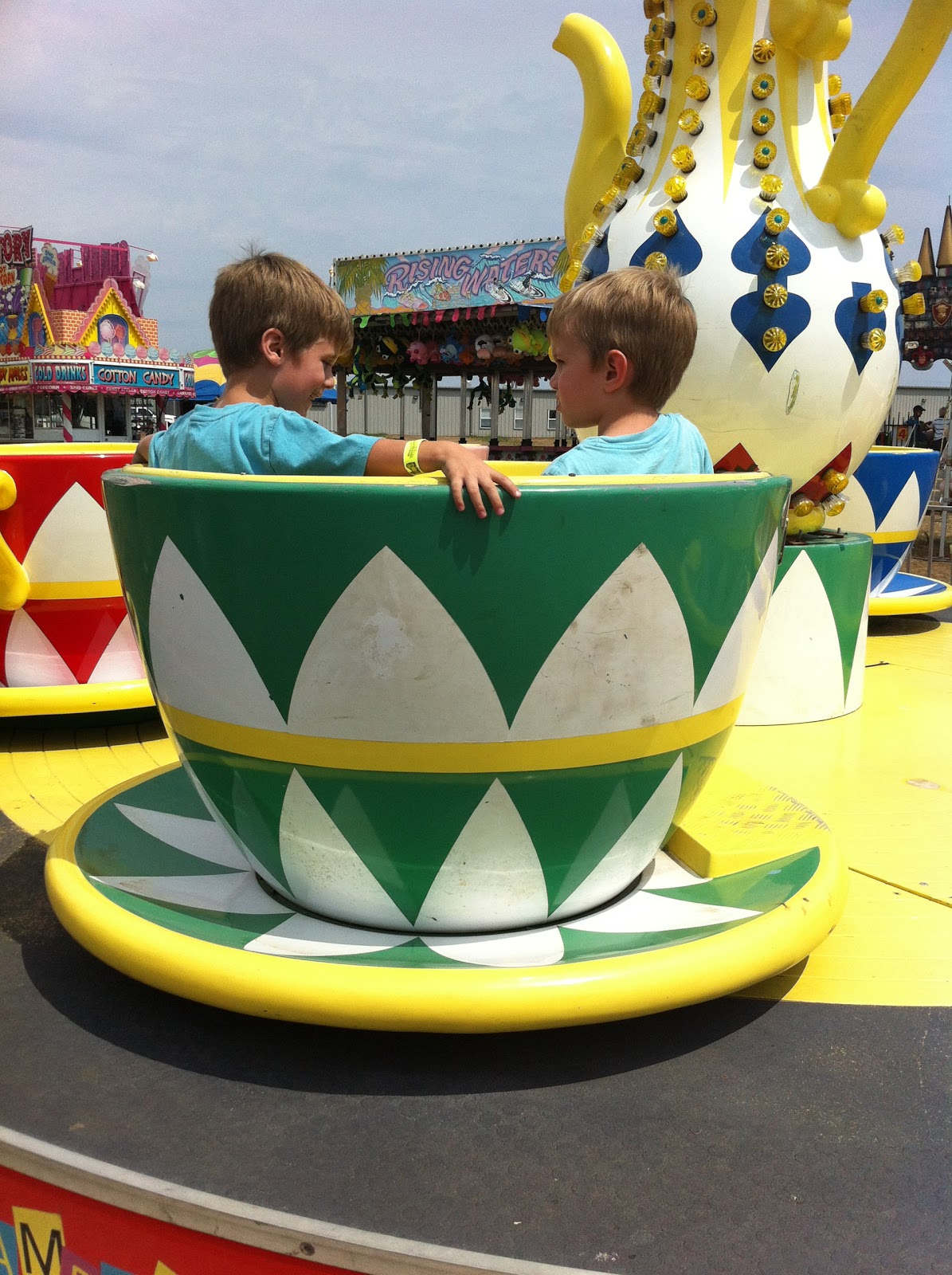 Ok, so you all know the annual Benton County Fair that comes around, and boy howdy has it gone downhill, or at least from what I remember. Nonetheless, Hale enjoyed it. I can say that the foot long corndog, cotton candy, and "fresh" squeezed-sugar loaded lemonade that we inhaled was pretty scrumptious, if I do say so myself! Between the rickity rides, and the outrageous prices, we thouroughly enjoyed ourselves. Tricked you, huh? Well, I enjoyed watching Hale go on the tea cups, Flinstone train, and the soft-punch kiddie toy maze complete with slide! My favorite part was seeing Hale's eyes light up when he popped two out of three balloons and won a fake, felt $100 bill! He was proud of that thing!